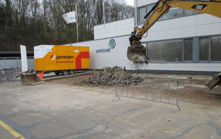 In opdracht van Umicore Nederland BV voert Janssen Grondverzet en Transport een sanering uit t.b.v. de aanleg van een nieuwe parkeerplaats.
